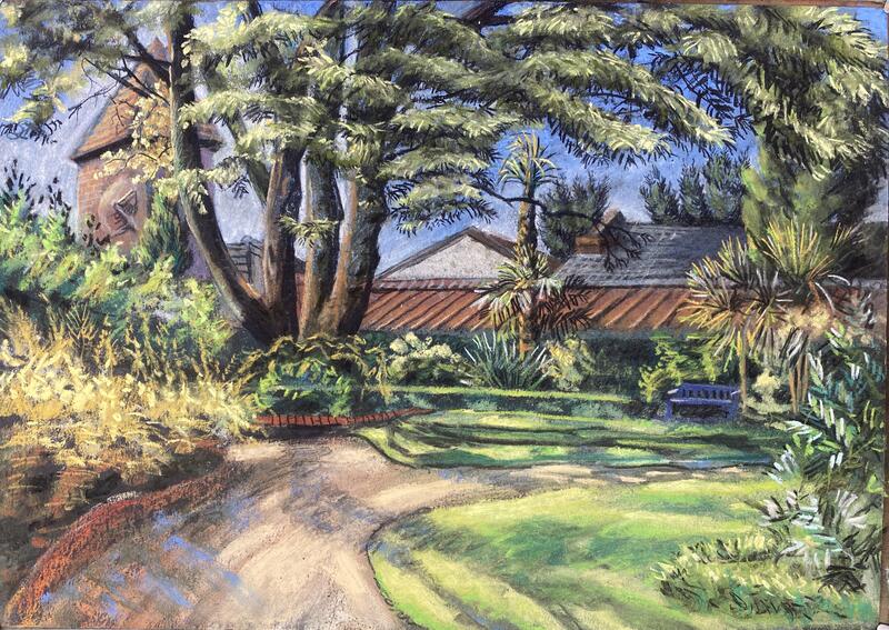 The final 6th state, after selective, minimal alterations in the studio the following Sunday May 12th. At this point I gave the image a final layer of liquid fixative (using a blow-driven spray diffuser tool). You can also use unperfumed hairspray, but professionally made fixative will afect the colours less. Fixing drawings always tend to make light, opaque colours a bit less bright, and more transparent. And also tends to heighten tonal contrast generally. Sometimes I work a final selective layer on top, if I want to bring the brightness and opacity back to the lighter hues, - and this 'final-final' layer I usually leave unfixed.
