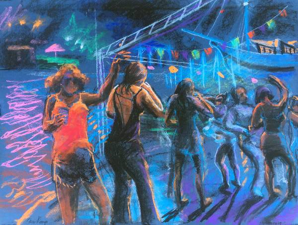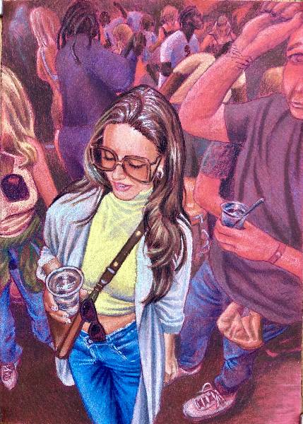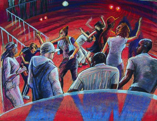 I call these images 'live clubscapes'. Recent Images in charcoal and pastel made 'on location' in dance-clubs and live music events. Participation as well as observation feed the outcome (2010-2020).