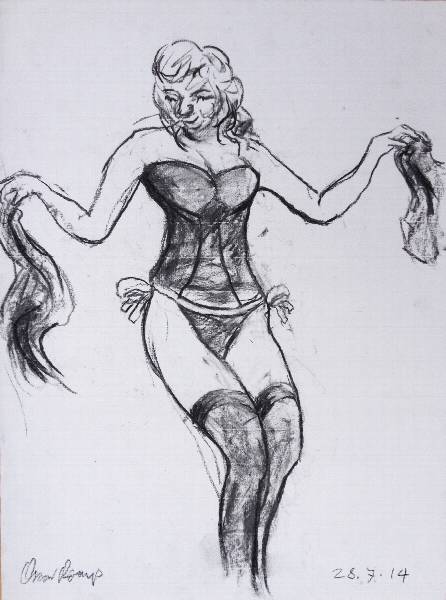 Drawn 'live' on location during a short 10 minute performance at The Infinitease Burlesque show, at 'The Sin Bin’, East London. 2017.