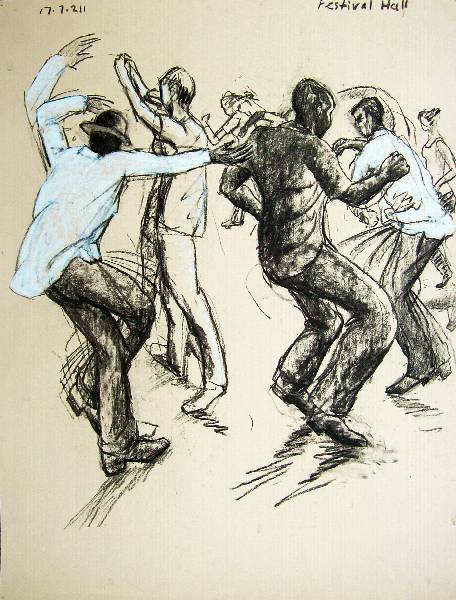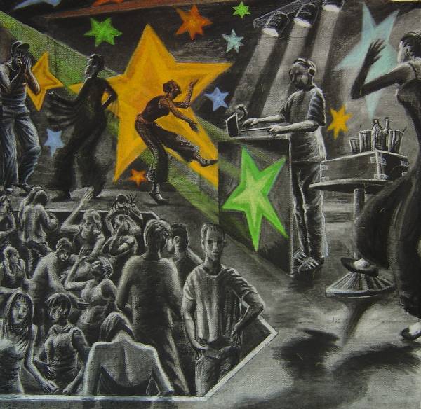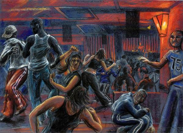 Pastel On Paper 27cm x 47cm. 2014. Made with reference to skecthes and photo-snaps made at The Hi Hat Jazz-Dance Club at The Jazz Cafe, Camden circa 1999/2000.